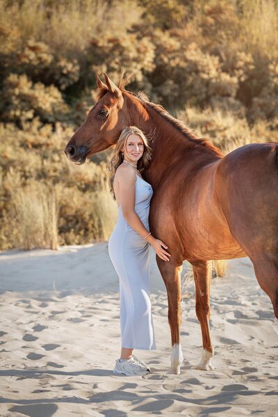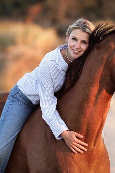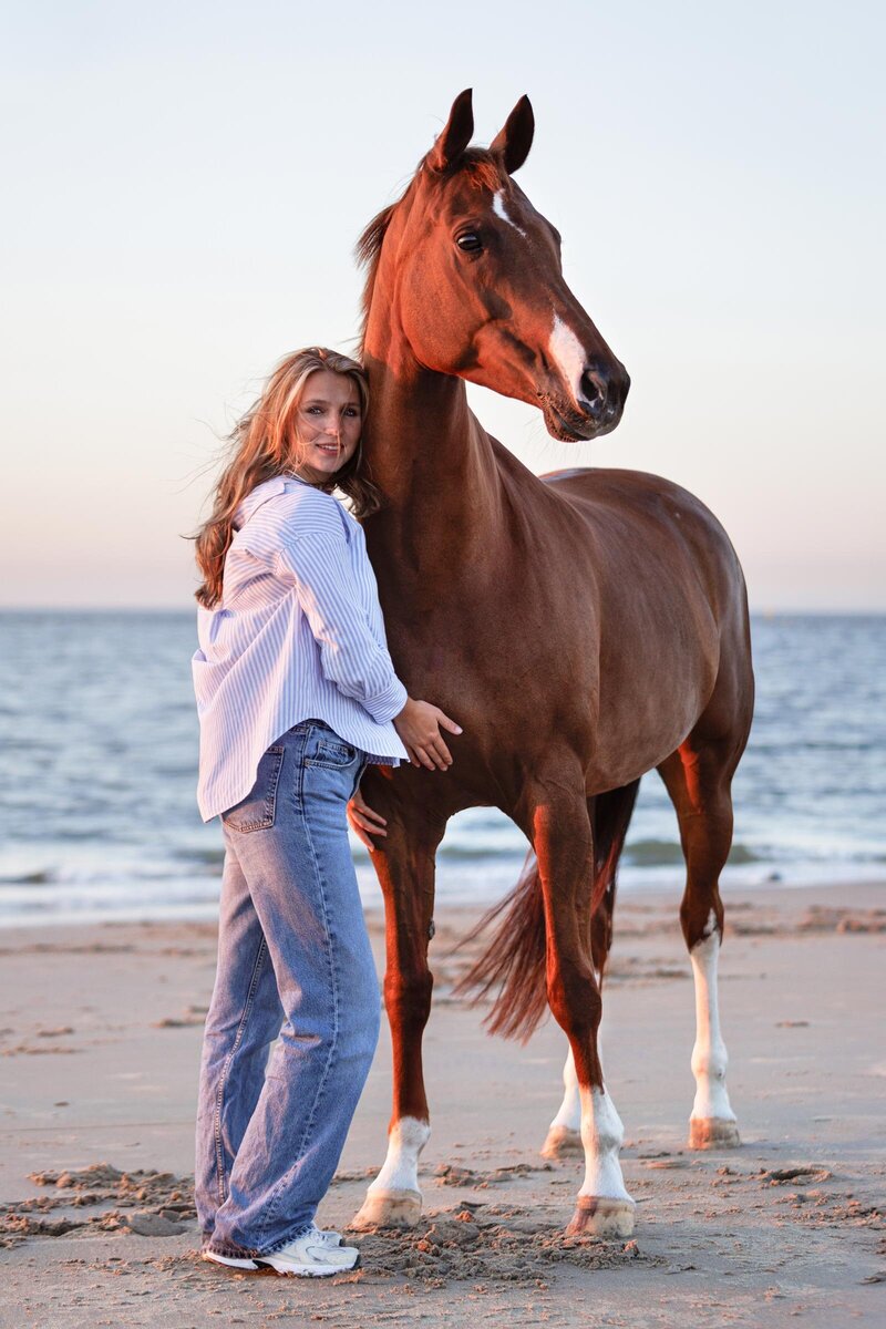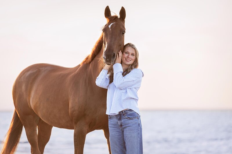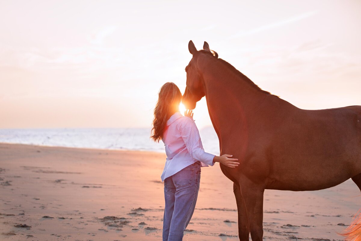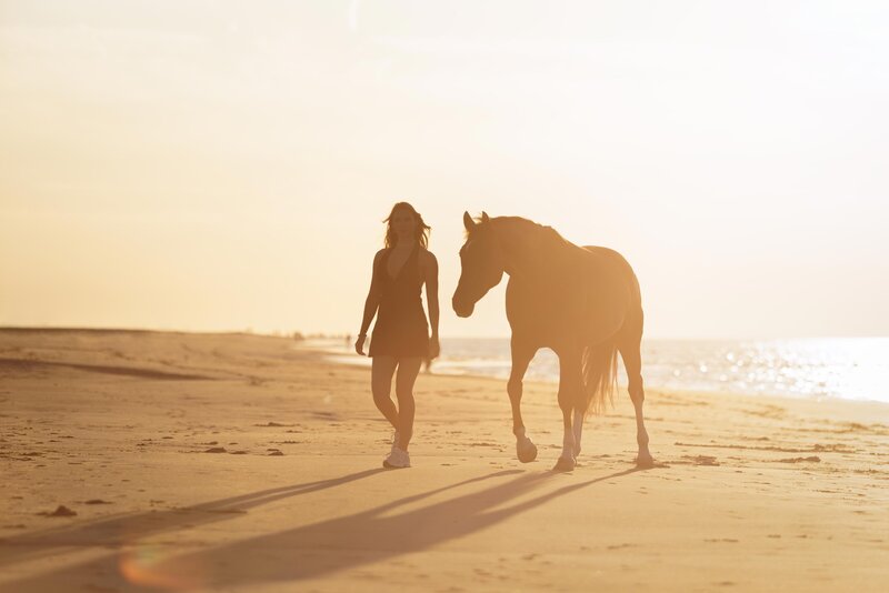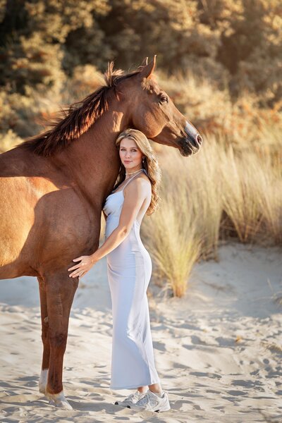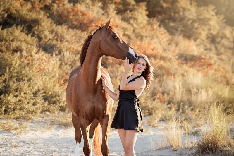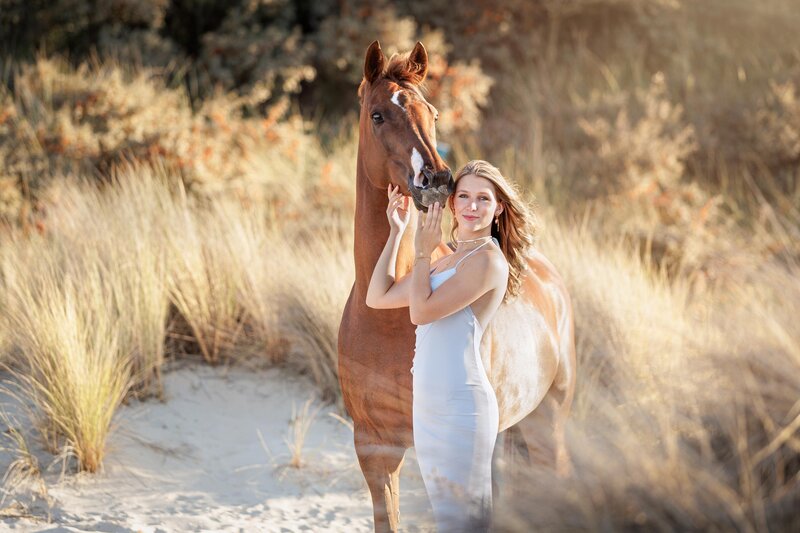 Wat een bijzondere avond was dit! De zon scheen volop, de sfeer was perfect en ik mocht werken met twee prachtige modellen: Venna en haar paard Liv. Venna & Liv heb ik al een aantal keer eerder gefotografeerd. Meestal waren dat rijfoto's en portretfoto's ernaast in een prachtig setje. Maar nu kozen we voor de 2e keer het strand.