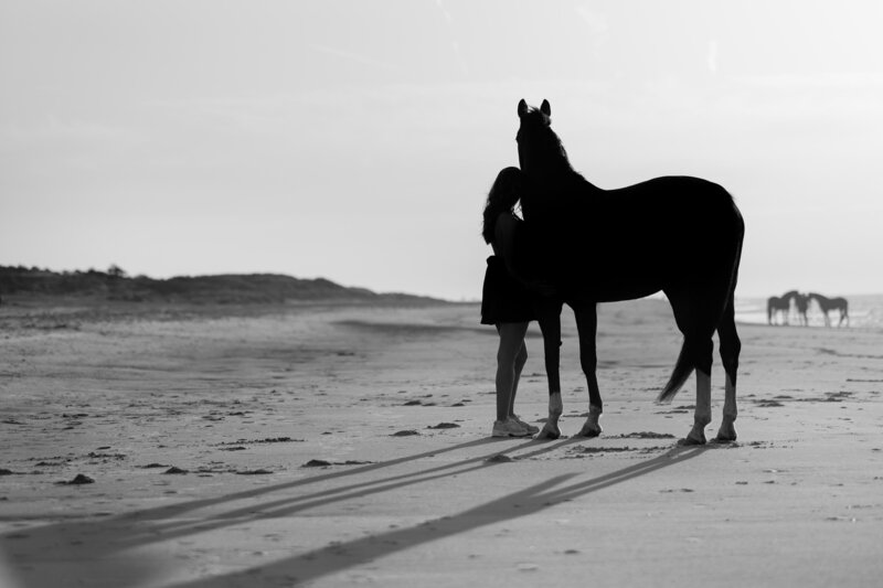 En dat is precies wat ik zo mooi vind aan fotografie: ieder duo, ieder paard en elke locatie heeft een eigen verhaal. Of je nu kiest voor een dromerige zonsondergang in de duinen, een sfeervolle shoot in het bos of juist krachtige blackfotografie, elke shoot is uniek!